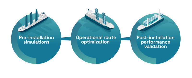The potential of digital technology to act as a catalyst for wind power goes beyond fuel savings. Going forward, data analysis and simulation tools will further enhance the safety and stability of wind-assisted ships, especially as sails become larger and more complex. These advanced simulation and 3D modelling tools can also support shipowners’ decision-making in the design phase – helping them choose the right efficiency solution for their ship and its unique operating profile, as well as projecting realistic emissions-saving performance for specific voyages.