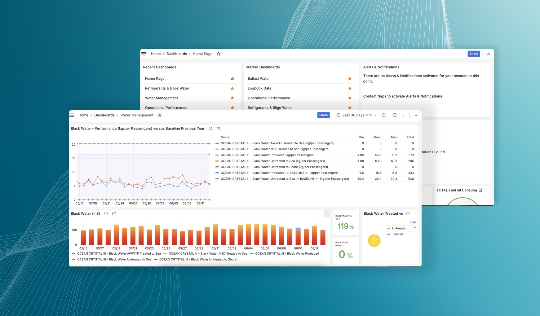 Operations teams aggregate data from NAPA Logbook and NAPA Stability in NAPA Fleet Intelligence, building dashboards to spot trends and form an operational profile of each vessel—turning routine records into decisions that actively support ships day to day.